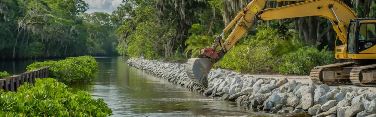 Riprap involves specialized techniques tailored to Florida’s climate and regulations to ensure projects are completed efficiently, safely, and in compliance with local ordinances.